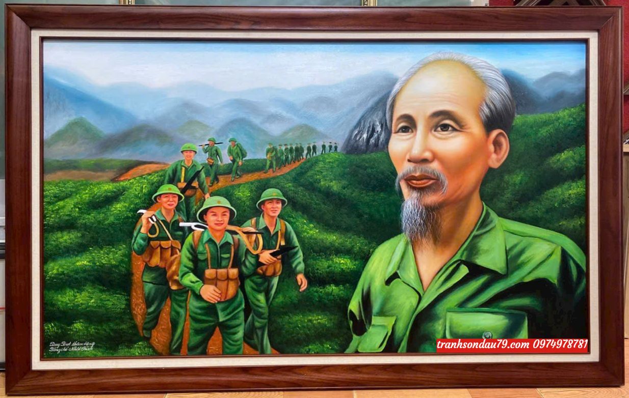 Tranh sơn dầu bác hồ cùng chúng cháu hành quân khung gỗ bức tranh sơn dầu cực kì đepj mắt tranh vẽ sơn dàu bác hồ luôn là biểu tượng đeph ý nghĩa mang đến chúng ta cảm nhận được vẻ đẹp tinh tế bức tranh sơn dầu bác hồ cùng chú cháu hành quân luôn là biểu tượng đẹp trong người dân việt nam, bức tranh được hoạ sĩ chau chuất với nối vẽ cực kì đẹp măt Hình ảnh tranh đá quý bác đang cùng chúng cháu hành quân.