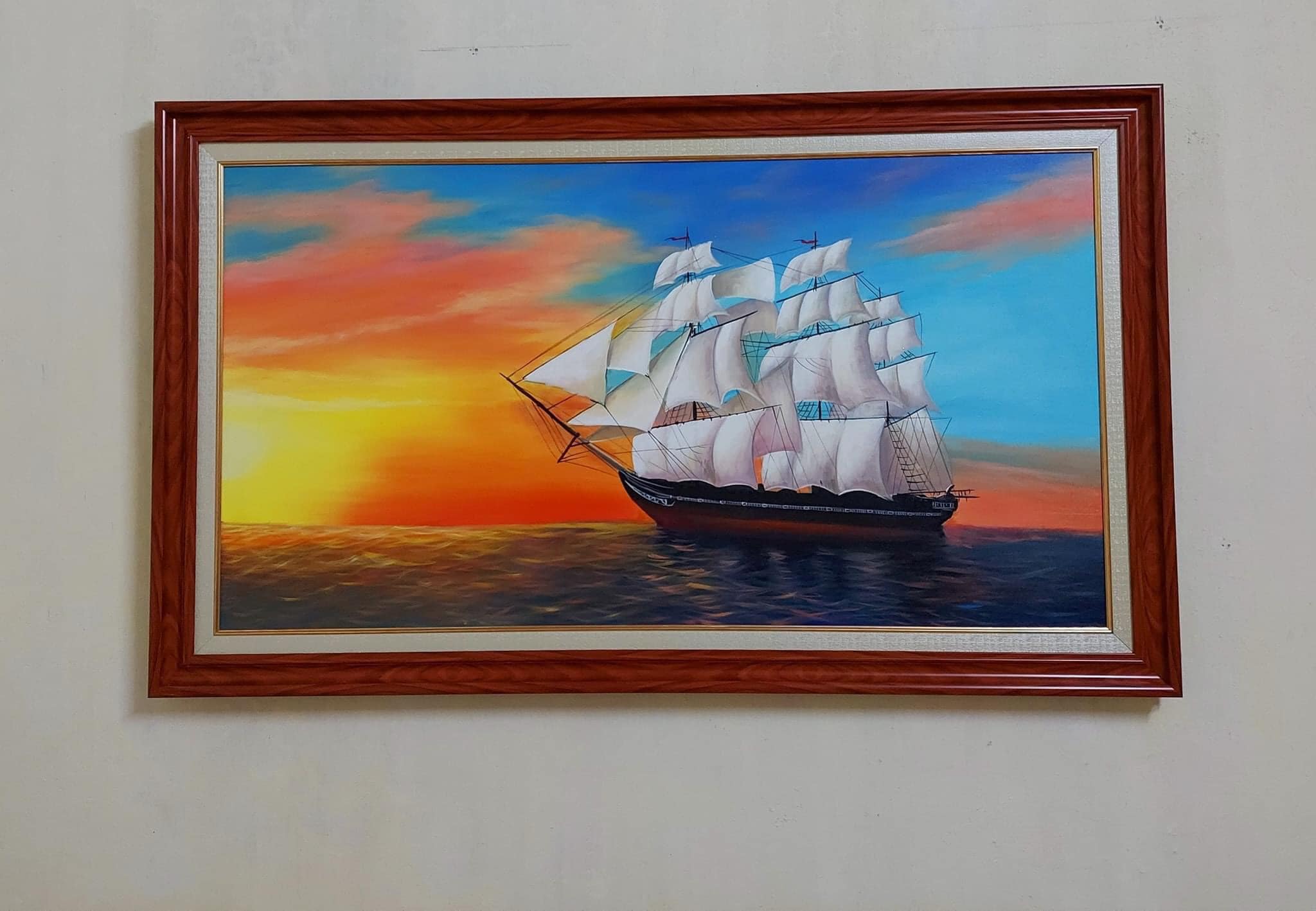 tranh thuận buồm xuôi gió bức tranh thể hiện cảnh ra khới với chiệc thuyền mang đến cảnh thuận buồm khi chở về, tranh vẽ chất liệu sơn dầu vô cùng đep và nôi quấn tranh được hoạ sĩ cháu chuất có được bức tranh vô cùng đẹp và nôi cuốn, tranh được vẽ chất liệu sơn dầu có độ bền trên 10 năm, tranh thuân buồm xuôi gió là biểu tượng đẹp cho doanh nhân cơ quan cửa hàng trưng bày sản phẩm