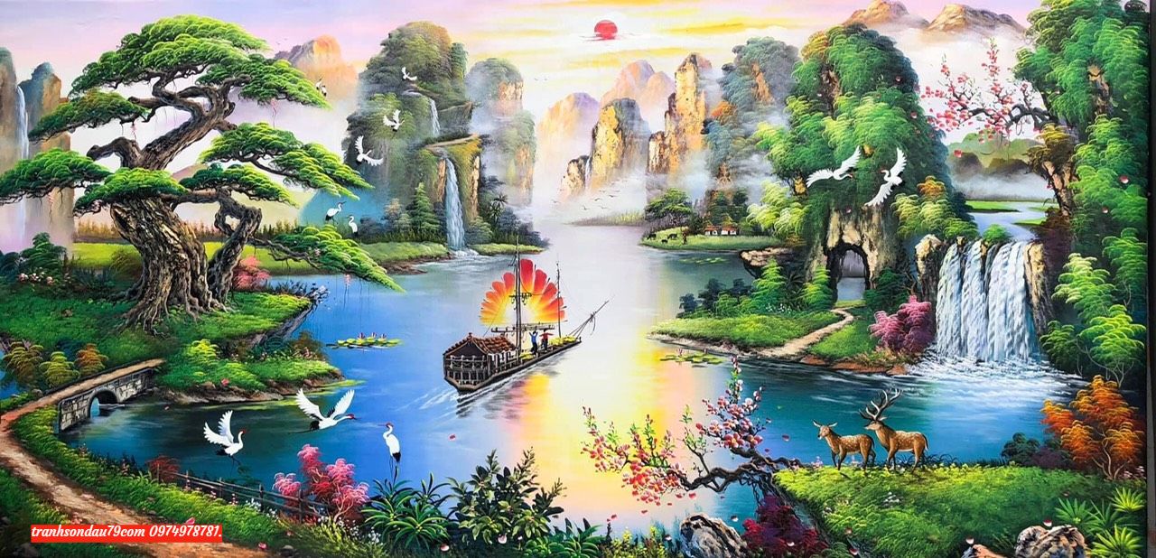 Tranh sơn thủy ,tranh sơn thủy phòng khách ST026 Tranh sơn thủy phòng khách bức tranh sơn thủy treo phòng khách rất đẹp mắt tranh được vẽ chất liệu sơn dầu cực bền đẹp tranh treo mang ý nghĩa phong thủy rất thích hợp cho người hợp nước thể hiện được sự sang trong ý nghĩa bức tranh, việ nam tranh sơn thủy đa phần được lựa chọn rất phổ biển tranh trang trí nhà văn phòng … cơ quan luôn mang ý nghĩa tài lộc thác chảy màng đến sự thay đổi gia chủ thêm của cải tươi mới hợn.Tranh sơn thủy là một bức tranh chuyên vẽ về những cảnh thiên nhiên hùng vĩ từ thủa sơ khai nhất, đó chính là vẻ đẹp hùng vĩ, trùng điệp của núi non sông nước hòa quên